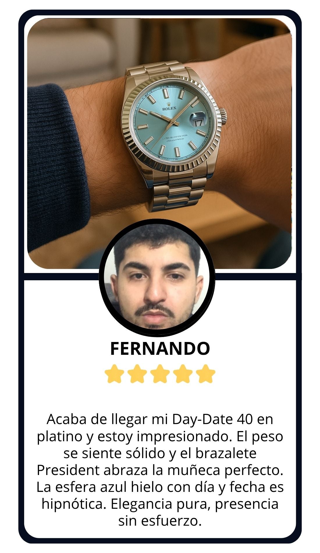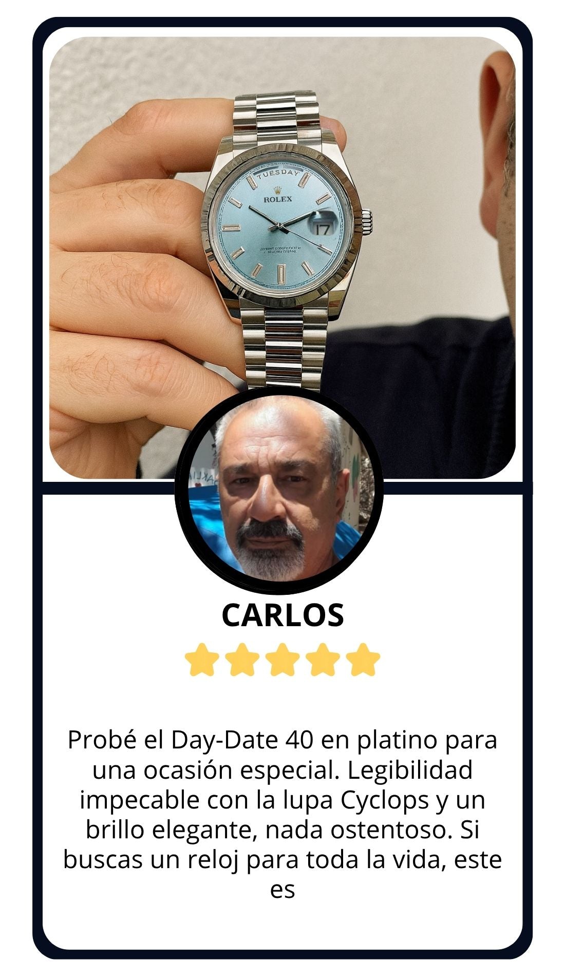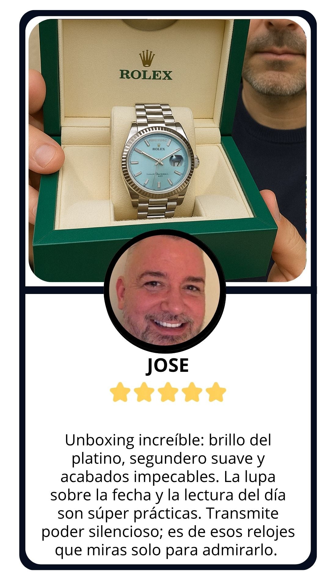 La firma exclusiva de los relojes Rolex de platino. Un color reservado únicamente a modelos legendarios como el Day-Date, Cosmograph Daytona, Perpetual 1908 y Sea-Dweller.