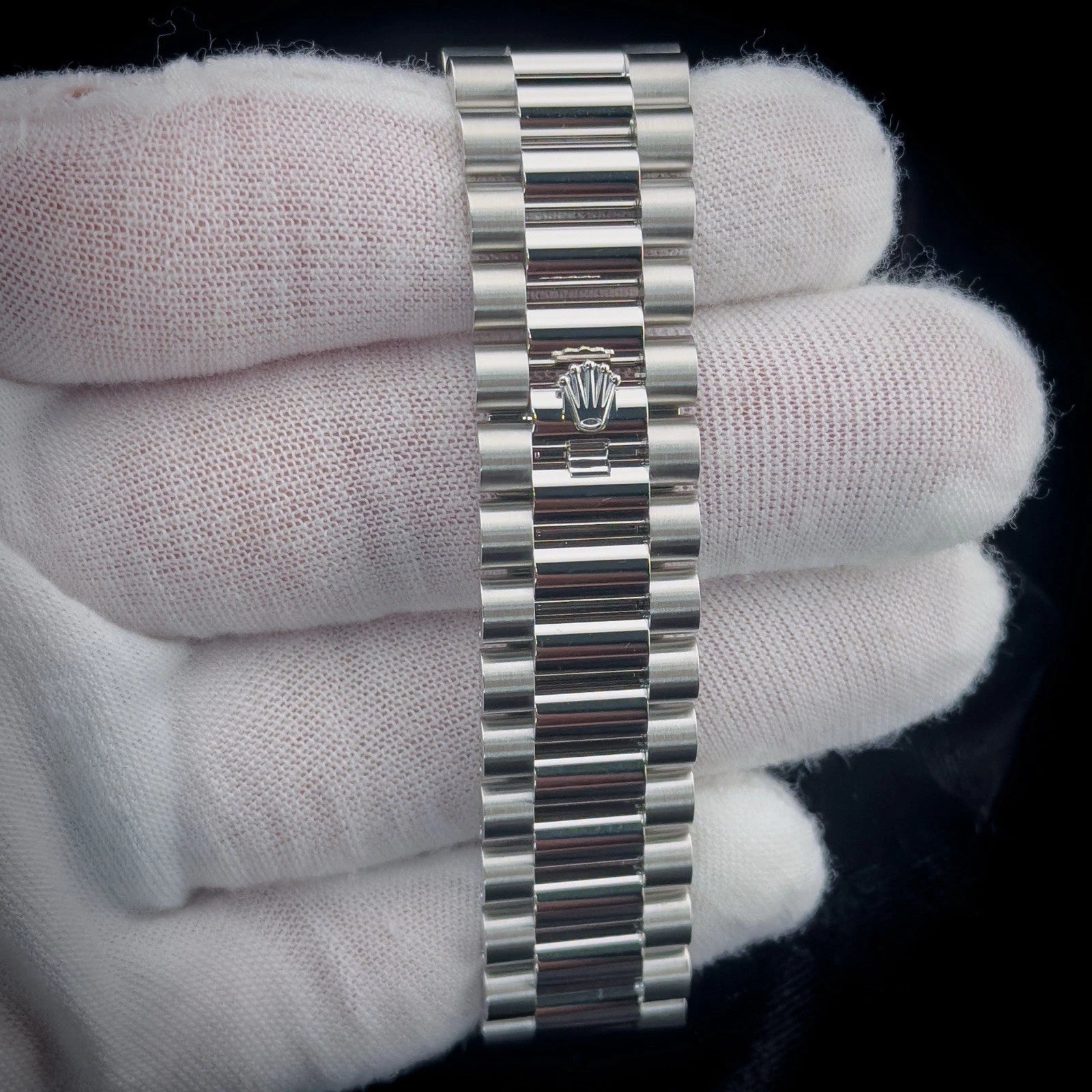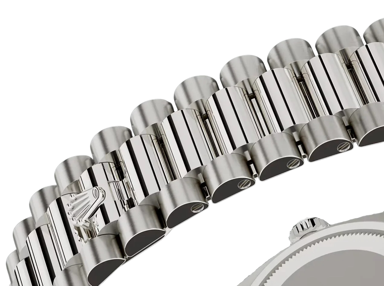 Creado en 1956 para el lanzamiento del Day-Date, es el máximo símbolo de refinamiento y confort. Con tres hileras de eslabones semicirculares, siempre elaborado en metales preciosos y controlado personalmente por los relojeros de Rolex, garantiza una belleza impecable y una calidad incomparable.